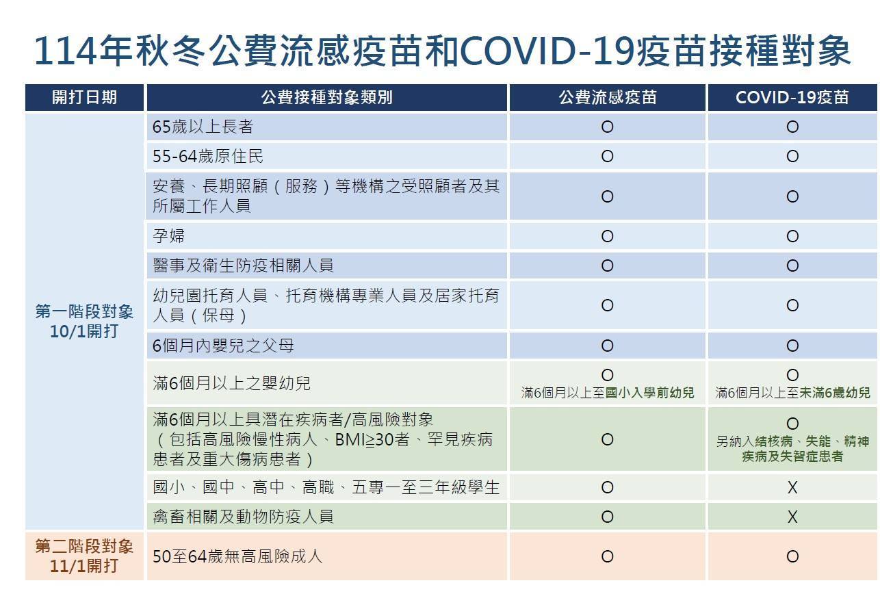 114年公費流感疫苗及covid19疫苗實施對象