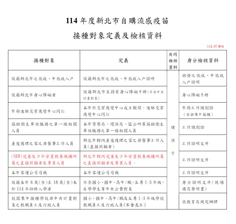 114年市自購流感疫苗實施對象